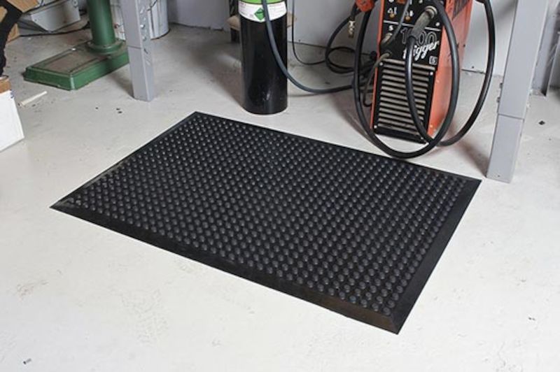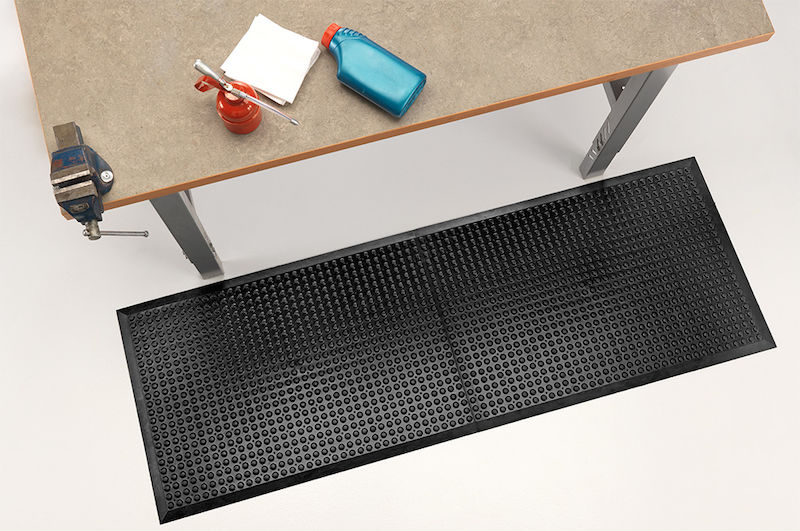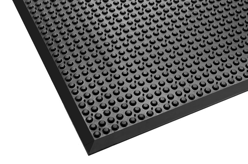 Gummimatte Senso Nitril, svart, LxB 1200 x 900 mm. Solid matte for industrimiljøer. Resistent mot de fleste oljer og kjemikalier. Tåler lettere sprut fra sveis og slip. Formen på bulkene og elastisiteten i nitrilgummien gjør matten god å stå på.