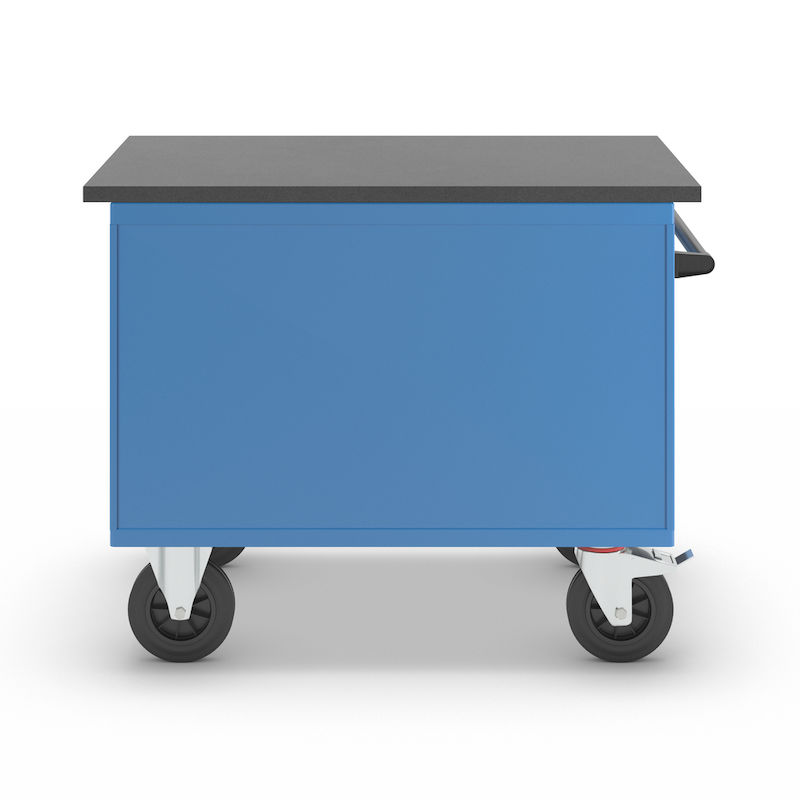 2 svingbare hjul og 2 faste hjul med massive gummidekk, hjul Ø 200 mm.