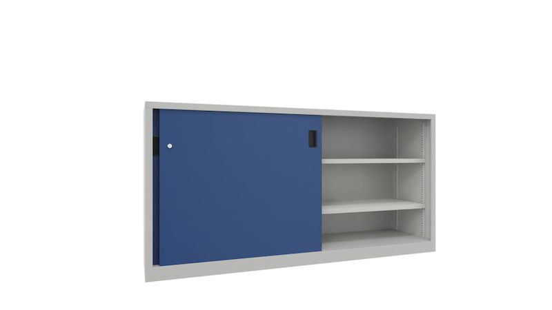 Dette robuste stålskapet overbeviser med sin stabile, sveisede metallkonstruksjon og er spesielt egnet for verksteder, lagerområder og industrielle arbeidsmiljøer med begrenset plass. Den kompakte konstruksjonen med lettbevegelige skyvedører sparer verdifull plass og muliggjør effektiv bruk også i smale ganger eller nisjer.