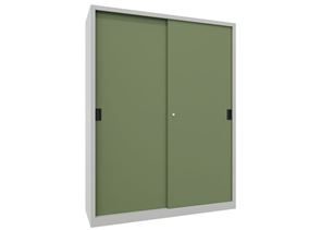 Dette robuste stålskapet overbeviser med sin stabile, sveisede metallkonstruksjon og er spesielt egnet for verksteder, lagerområder og industrielle arbeidsmiljøer med begrenset plass. Den kompakte konstruksjonen med lettbevegelige skyvedører sparer verdifull plass og muliggjør effektiv bruk også i smale ganger eller nisjer.