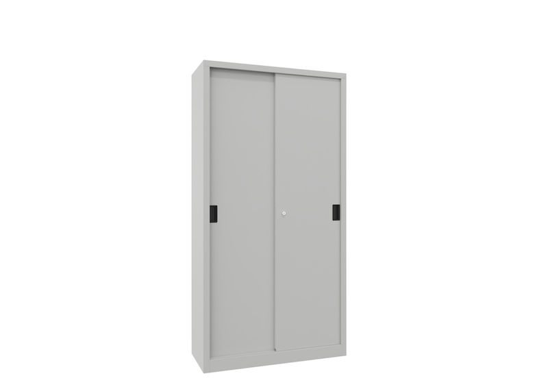 Dette robuste stålskapet overbeviser med sin stabile, sveisede metallkonstruksjon og er spesielt egnet for verksteder, lagerområder og industrielle arbeidsmiljøer med begrenset plass. Den kompakte konstruksjonen med lettbevegelige skyvedører sparer verdifull plass og muliggjør effektiv bruk også i smale ganger eller nisjer.
