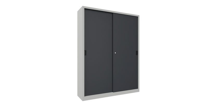Dette robuste stålskapet overbeviser med sin stabile, sveisede metallkonstruksjon og er spesielt egnet for verksteder, lagerområder og industrielle arbeidsmiljøer med begrenset plass. Den kompakte konstruksjonen med lettbevegelige skyvedører sparer verdifull plass og muliggjør effektiv bruk også i smale ganger eller nisjer.