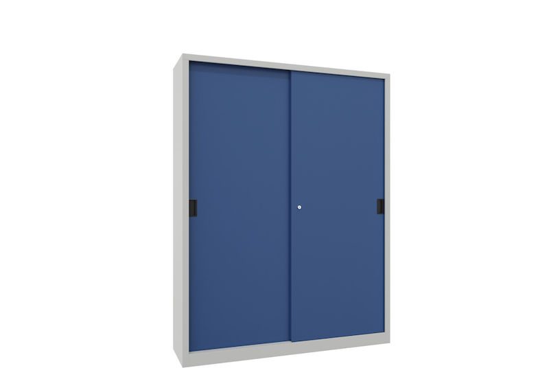 Dette robuste stålskapet overbeviser med sin stabile, sveisede metallkonstruksjon og er spesielt egnet for verksteder, lagerområder og industrielle arbeidsmiljøer med begrenset plass. Den kompakte konstruksjonen med lettbevegelige skyvedører sparer verdifull plass og muliggjør effektiv bruk også i smale ganger eller nisjer.