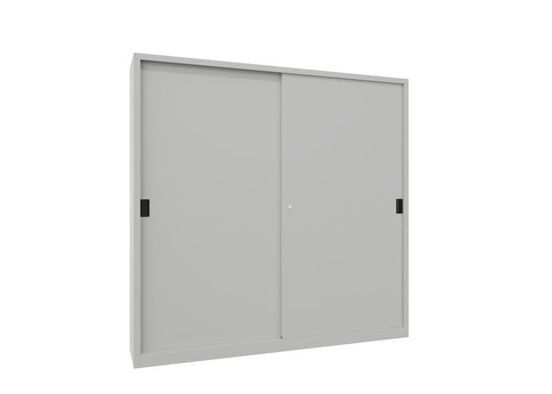 Dette robuste stålskapet overbeviser med sin stabile, sveisede metallkonstruksjon og er spesielt egnet for verksteder, lagerområder og industrielle arbeidsmiljøer med begrenset plass. Den kompakte konstruksjonen med lettbevegelige skyvedører sparer verdifull plass og muliggjør effektiv bruk også i smale ganger eller nisjer.