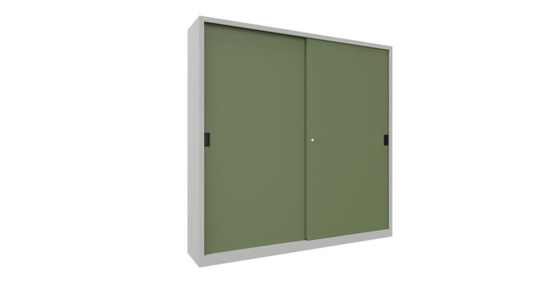 Dette robuste stålskapet overbeviser med sin stabile, sveisede metallkonstruksjon og er spesielt egnet for verksteder, lagerområder og industrielle arbeidsmiljøer med begrenset plass. Den kompakte konstruksjonen med lettbevegelige skyvedører sparer verdifull plass og muliggjør effektiv bruk også i smale ganger eller nisjer.