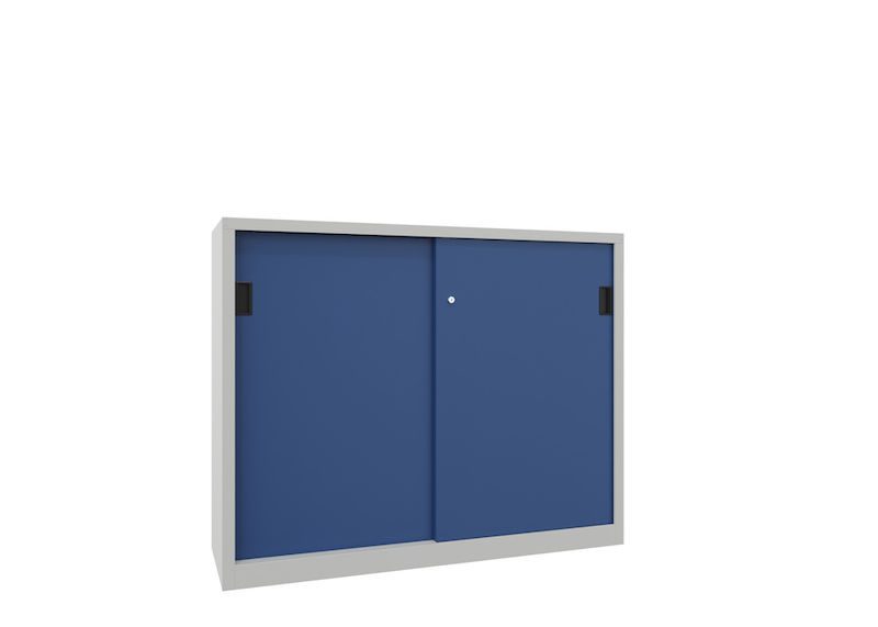 Dette funksjonelle metallskapet kombinerer plassbesparende design med langvarig kvalitet og skaper dermed pålitelig orden i profesjonelle arbeidsmiljøer. Spesielt der hvor plassen må utnyttes effektivt, er skyvedørskapet en gjennomtenkt og stabil løsning.