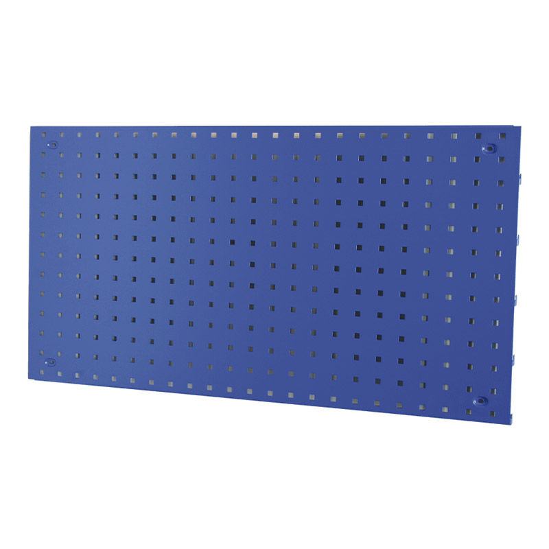 Verktøytavle, blå, L 1950 x H 950 mm. Verktøytavle av perforert metall med firkanthull 9,2 mm c/c 38 mm. For vegg eller frittstående på stativ. Størrelse: L 1950, H 950 mm. Tykkelse 1,5 mm.