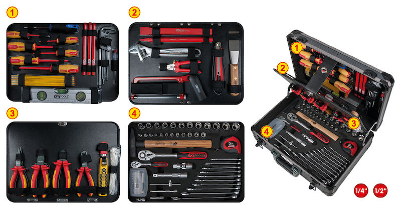 Verktøykasse for elektrikere Cederik, 128 deler, FlankTraction. - Antall deler: 128 stk- Materiale: krom-vanadiumstål- Farge: svart